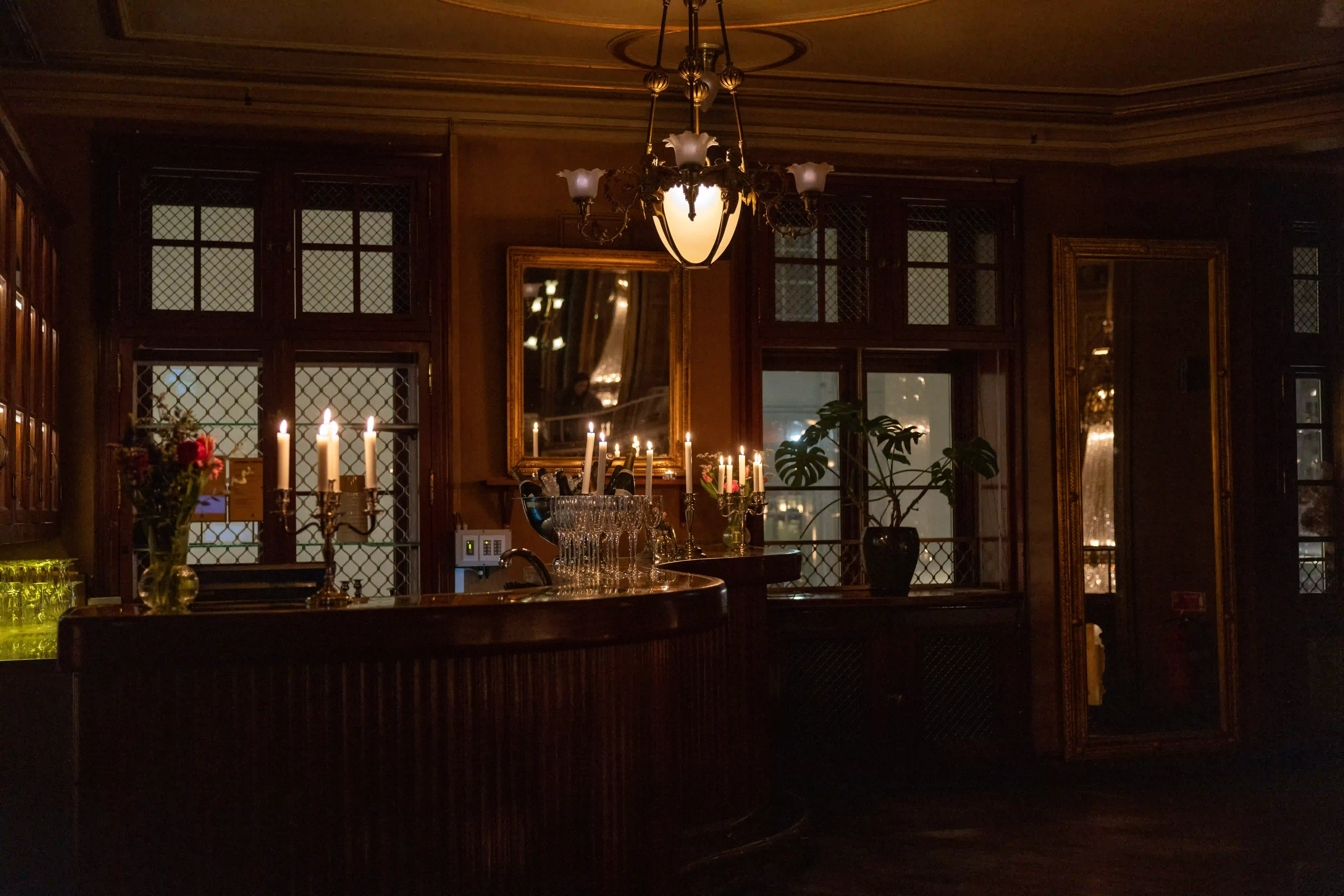 Här bjuds du på utsikt över Berns Asiatiska och dess magnifika kristallkronor.